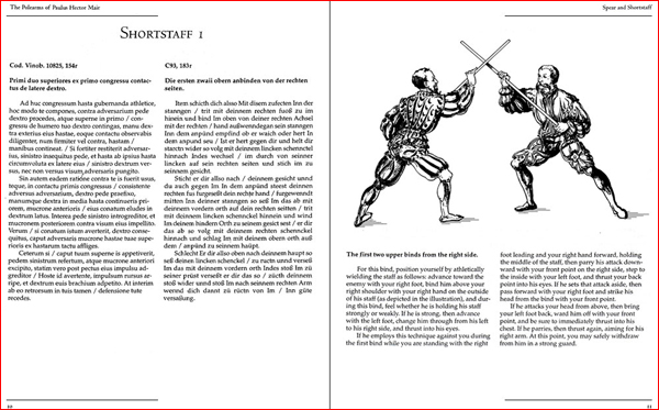 Each technique is presented in a two-page spread, with the original Latin and German text on one side, the restored illustration and instructions on the other. To make Mair's instructions easier to understand, the authors combined their Latin and German translations into one clear, plain English version. One reviewer commented that the authors have "done a great job of the translation of the Latin and German into English. That is, not a half-hearted, hedging-bets literal translation, but one that reads as modern English." Knight's literal Latin and Hunt's literal German translations are included in the Appendices.