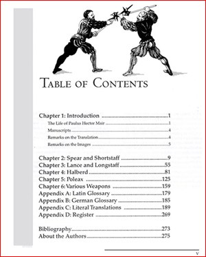 Polearms of Paulus Hector Mair opens with a foreword by John Clements surveying the use of polearms in Renaissance Europe, including historical accounts of duels settled by staff, halberd and poleax.